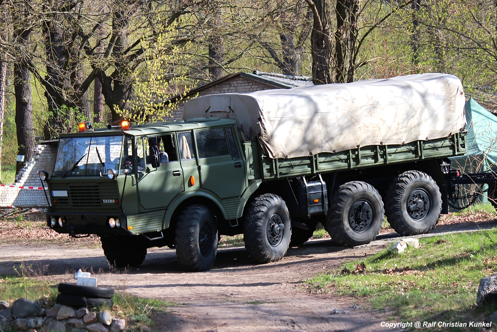 Tatra 813 8x8 - schweres Radzugmittel (RZM) der NVA mit Allradantrieb - hochgeländegängige Schwerlastzugmaschine mit Pritsche/Spriegel/Plane aus tschechischer Produktion, CSSR, DDR-Import, Millitär - fotografiert am 20.05.2012 zur Garnison-Schau an der St. Barbara Halle Altes Lager/ Jüterbog - Copyright @ Ralf Christian Kunkel (E-Mail-Kontakt: ralf.kunkel[at]gmx.net; bitte das [at] durch @ ersetzen)- http://fotoarchiv-kunkel.startbilder.de - Automobil-Fotografie Kunkel auch auf Facebook https://www.facebook.com/AutomobilFotografieKunkel